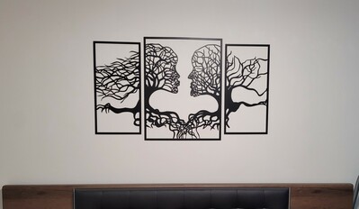 The 3-piece wooden decorative picture of trees on the wall with the faces of lovers is a great gift for your love on an anniversary, whether it's for a husband or wife, to whom you want to express love.