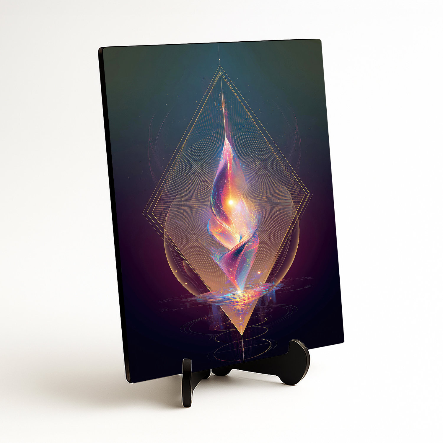 Meaning of the painting: The flame in the S-curve symbolizes the creative spark, transformation, and growth. The circles and golden geometric lines represent balance, protection, and clarity of intention.