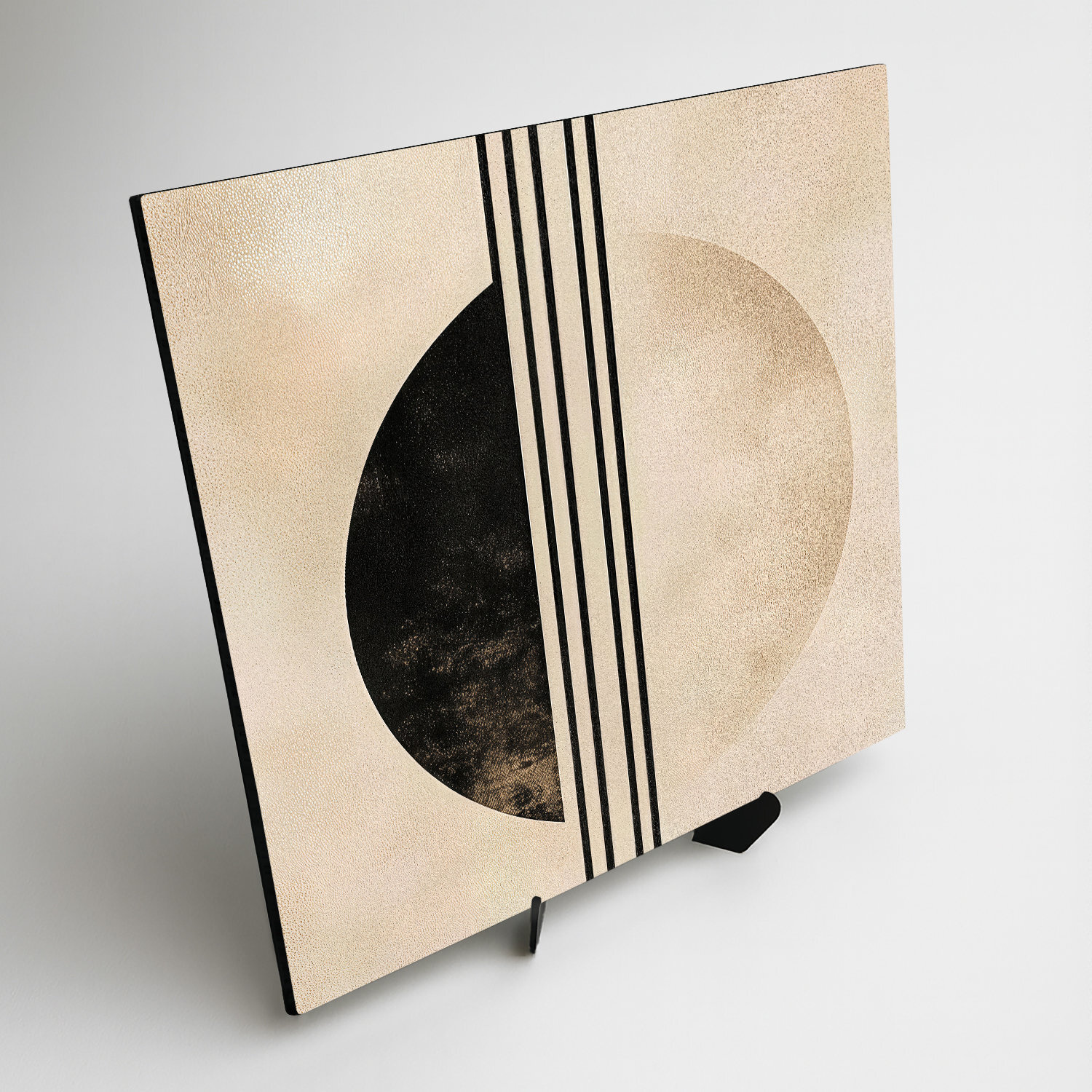 Abstract painting with a semicircle appears gentle and balanced due to the contrast of light and dark parts. Vertical lines running through the painting create a sense of stability and rhythm, while muted colors emphasize its timeless design. Ideal for those who appreciate subtle yet thoughtful abstraction. Suitable as a unique gift for someone with an eye for detail and a minimalist style.