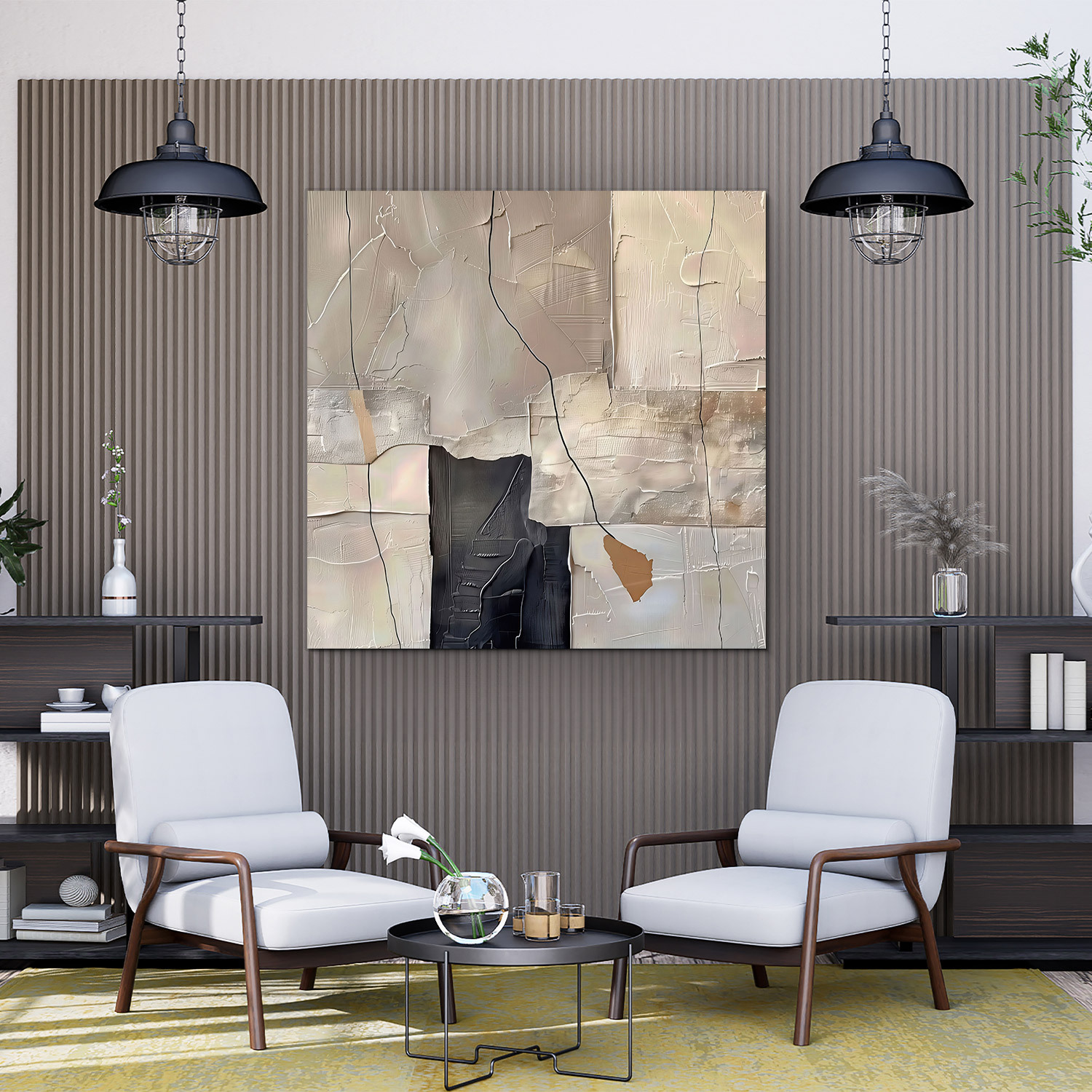 Wooden Abstract Painting in neutral tones of beige, cream, and black adds a touch of luxury and taste to any space. Modern design with clean lines appears timeless and professional. The wooden painting stands out beautifully in the office, living room, or hallway, where it emphasizes the cleanliness of the interior.