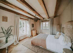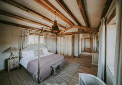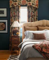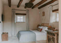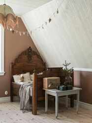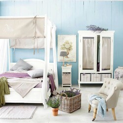 Country bedrooms are characterized by light tones and wooden beds, often standing on legs. A bed with a large wooden headboard enhances the country vibe.