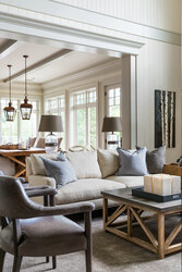 We present an extensive gallery full of ideas for living rooms styled or accented with country elements. Traditionally, country living rooms were the largest spaces in a home, where the family gathered. Therefore, choosing a large sofa is essential. As seen in the gallery, a fireplace is a defining feature, providing warmth and a gathering spot during colder months.