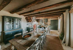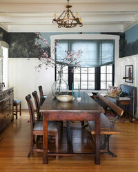 Traditional country dining rooms often feature solid wood tables or vintage sideboards with glass cabinets. These pieces, whether inherited or restored, can add authentic charm.