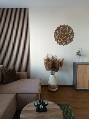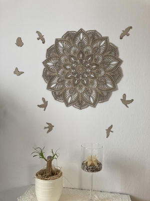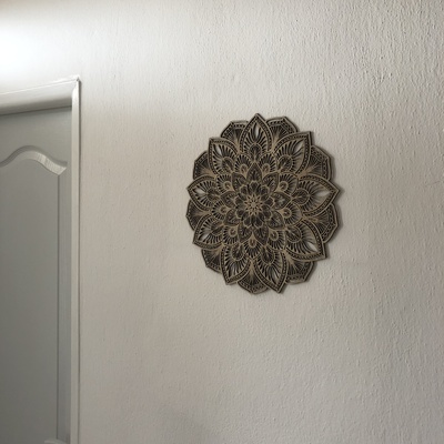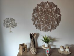 The cut-out wooden 3D mandala on the wall is a great wooden decoration for the home and will look beautiful on the wall in the living room or bedroom. Currently, mandalas are very trendy, modern, and sought-after design accessories for the home due to their positive psychological effects.