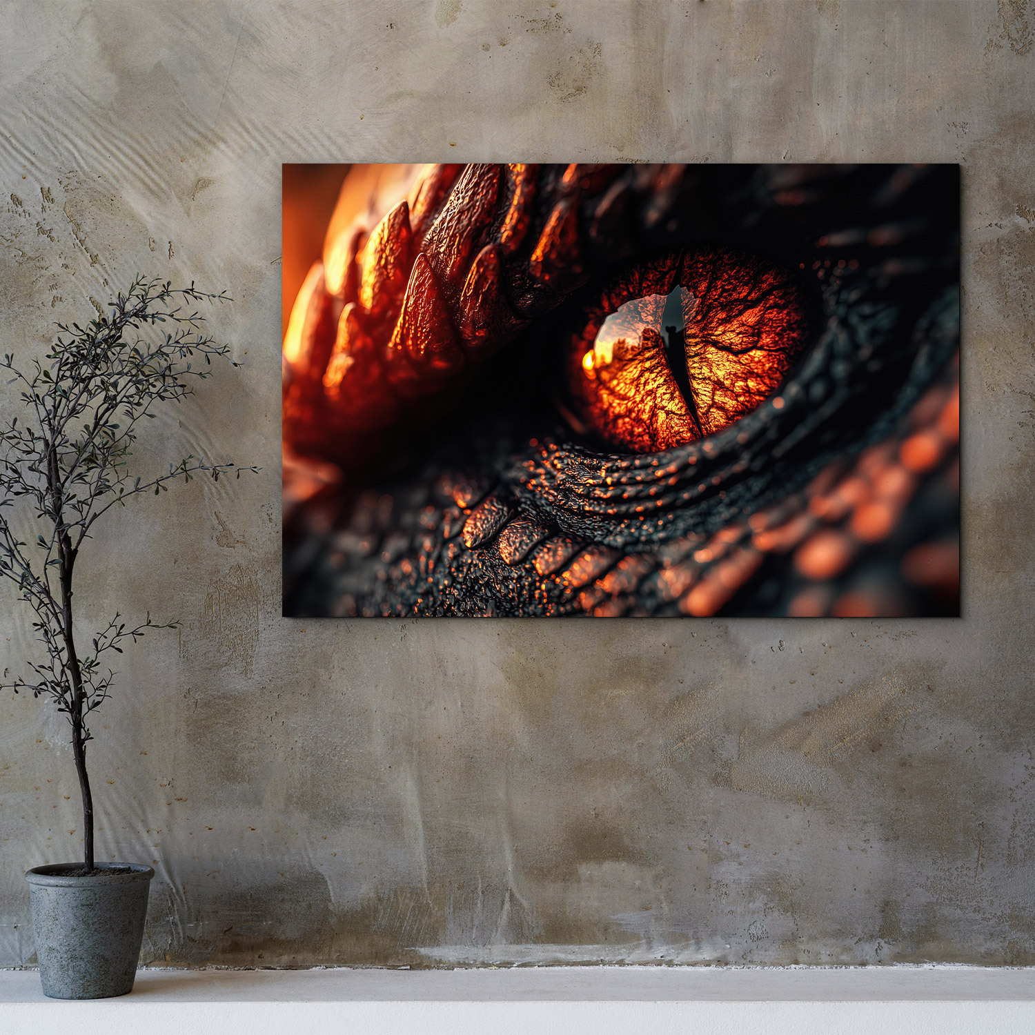 The design painting of the dragon's eye brings strength, mystique, and a dose of fantasy into the interior. Intense orange-red shades of the iris contrast with dark, rough scales, while realistic reflections in the eye create the feeling that the dragon is truly observing the events. The wooden painting immediately attracts attention and becomes a striking element in any room. An original gift for fantasy lovers, epic stories, and unconventional design.