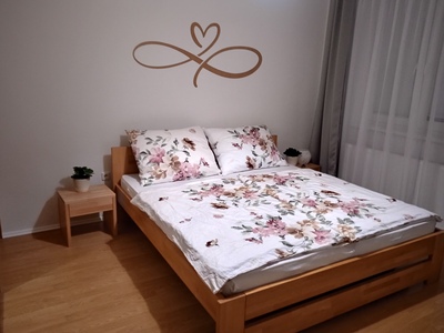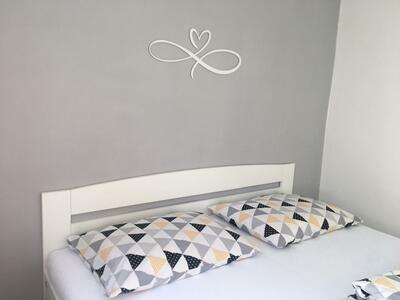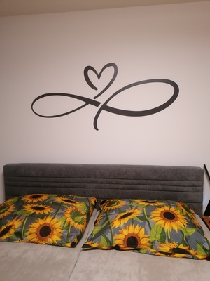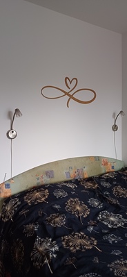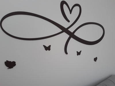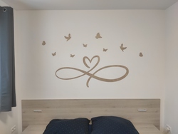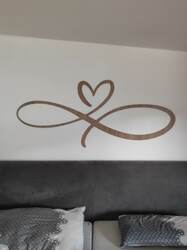 Infinite love is a popular and sought-after bedroom decoration above the bed. The wooden sticker on the wall is unconventional in its size. The larger size of the product can also serve as an original headboard.