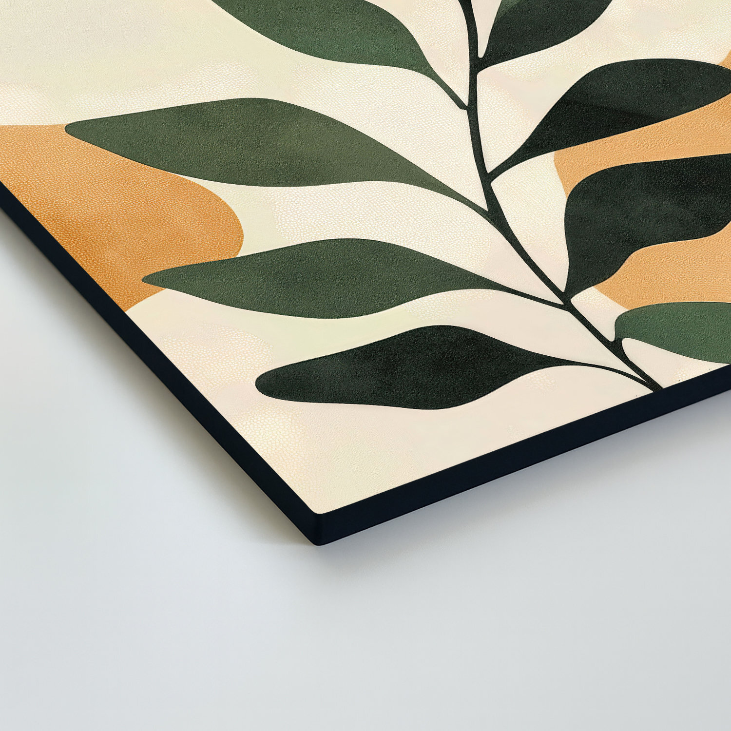 Minimalist painting with a delicate branch captivates with its purity, subtle botanical motif, and timeless appearance. The muted green and beige colors create an elegant, calm, and very tasteful effect, making the painting easy to combine with both modern and nature-inspired interiors. It beautifully stands out in the living room, bedroom, study, and entryway.
