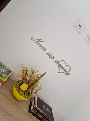 Hello, thank you for your review! We are delighted that you chose our motivational sign "Never stop dreaming" and that it brings you joy. We greatly appreciate your feedback and wish you many inspirational moments! Respectfully, the Dublez team.