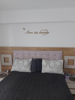 I chose to decorate the wall in the bedroom, above the bed. Since I saw the motivational message, it seemed to fit, but I wasn't exactly sure if the dimensions and the chosen shade would complete the image I had already formed in my mind. I ultimately chose to take the risk, and I'm glad I did! It left me speechless! ????