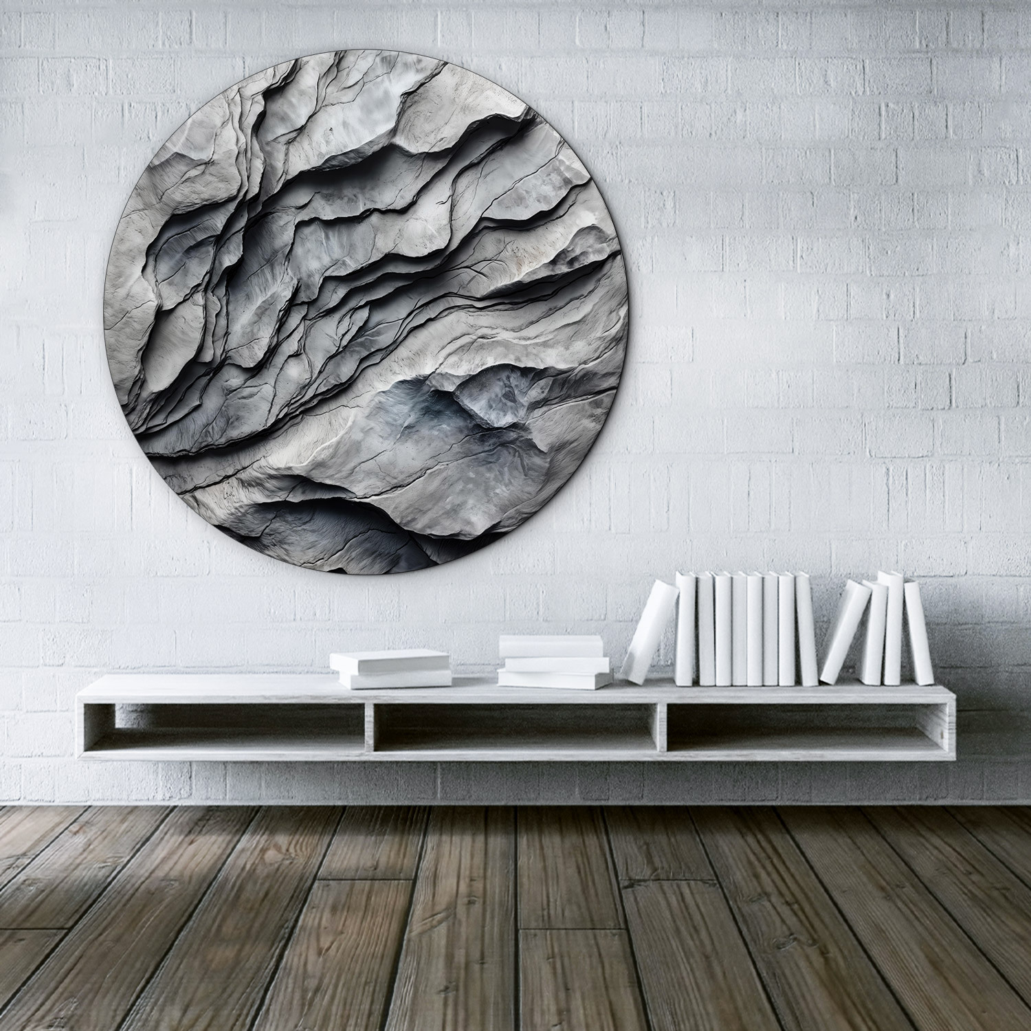 Round picture with a rock design and layers of stone looks timeless and elegant. The subtle gray shades are neutral, making them easy to combine with various furniture colors. The wooden picture is ideal for modern and minimalist interiors, as well as for industrial-style rooms. It fits perfectly in the living room above the sofa, in the office behind the desk, or in the bedroom above the bed. It is an exceptional accessory for anyone looking for a stylish and original picture.