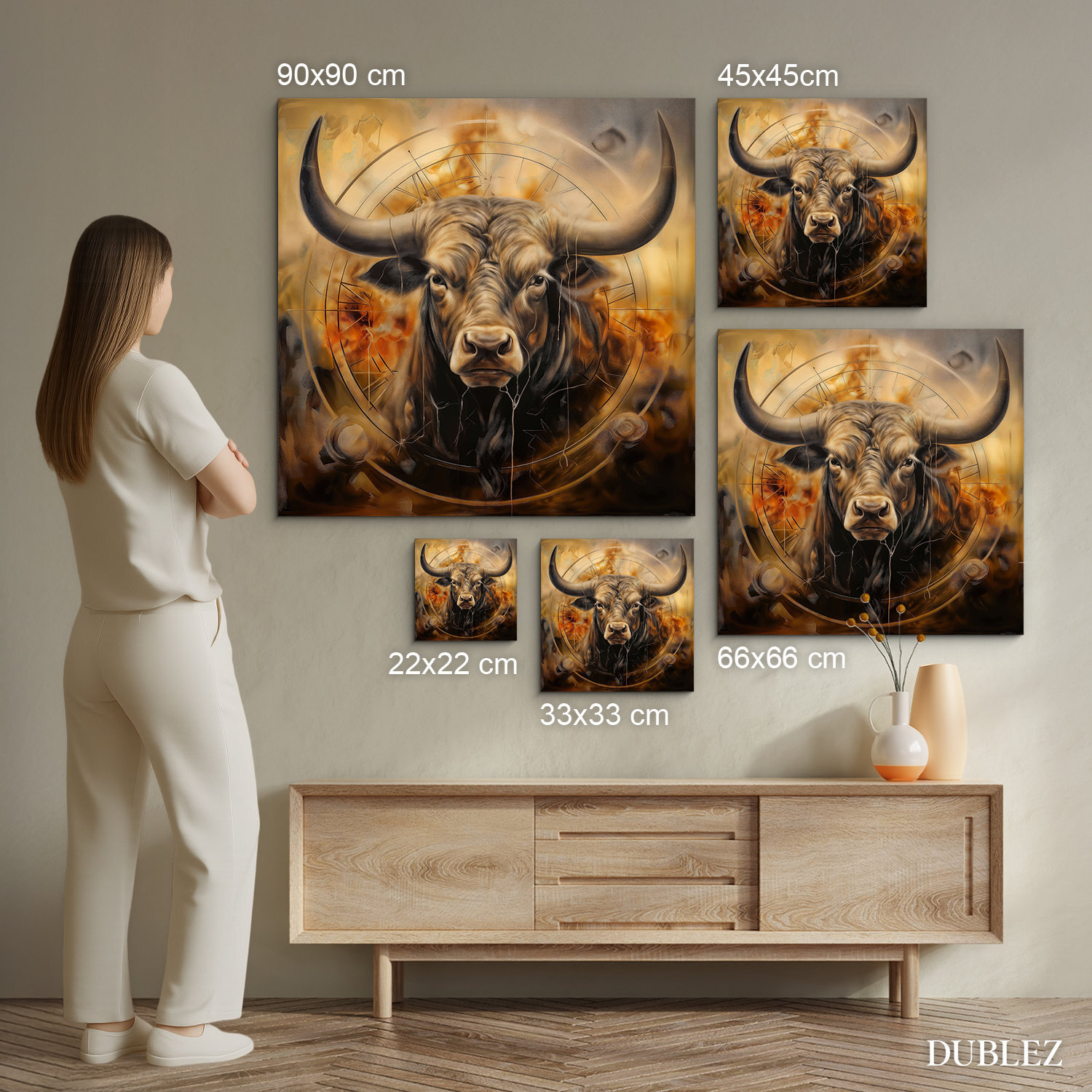 We create premium DUBLEZ wall art printed on wooden boards. We use cutting-edge technology and the highest-quality inks on the market. The design is printed directly onto the wood, then precisely cut with a laser. This gives the artwork a sleek, dark brown edge that highlights the design beautifully.