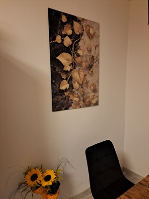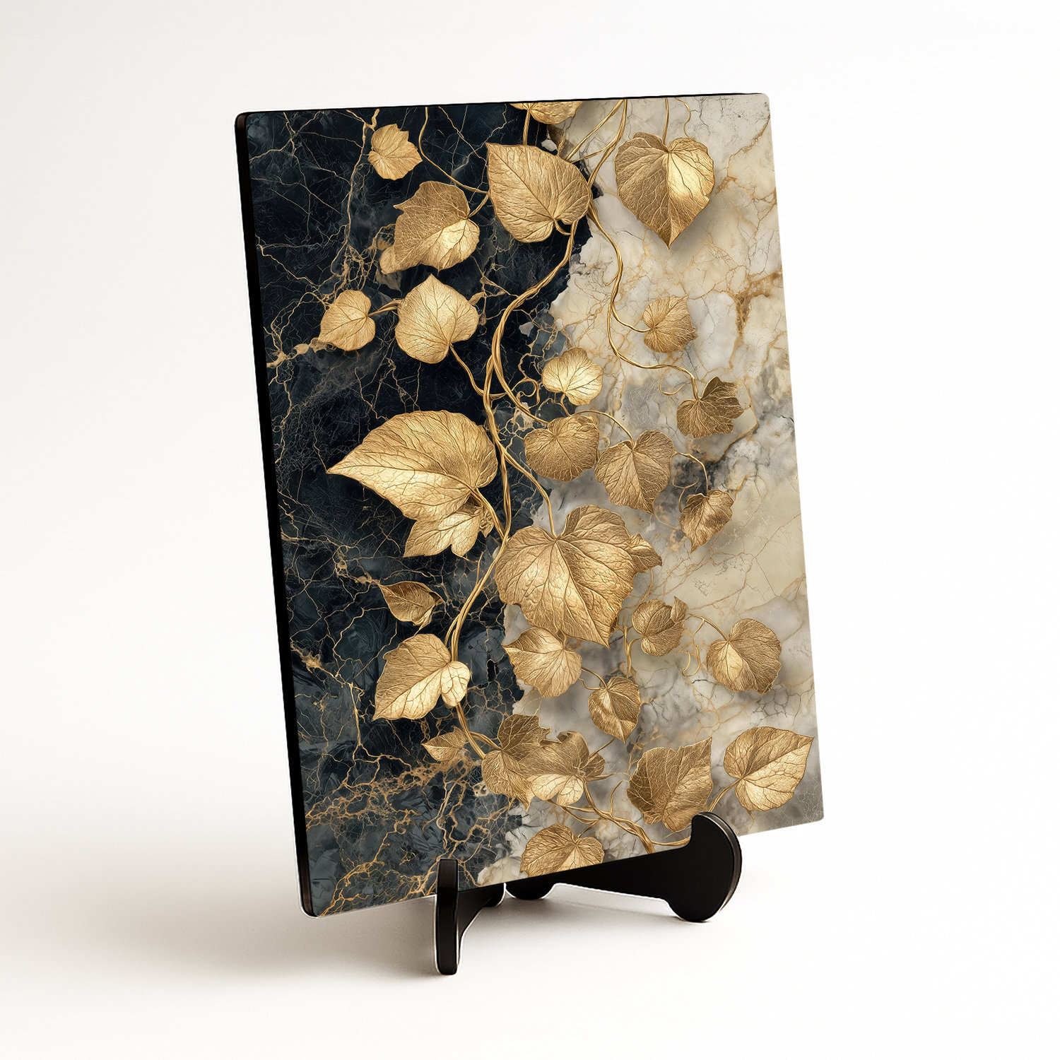 Stylish painting of golden vines on a marble background represents the perfect combination of luxury and nature. Detailed golden leaves and winding tendrils stand out from the dark and light background, creating a stylish image. The wooden painting will look great in the living room, bedroom, or office. It is the ideal solution for those looking for a unique accessory with a touch of luxury. It will appeal especially to women with a sense of style, but its timeless design will fit into any interior.