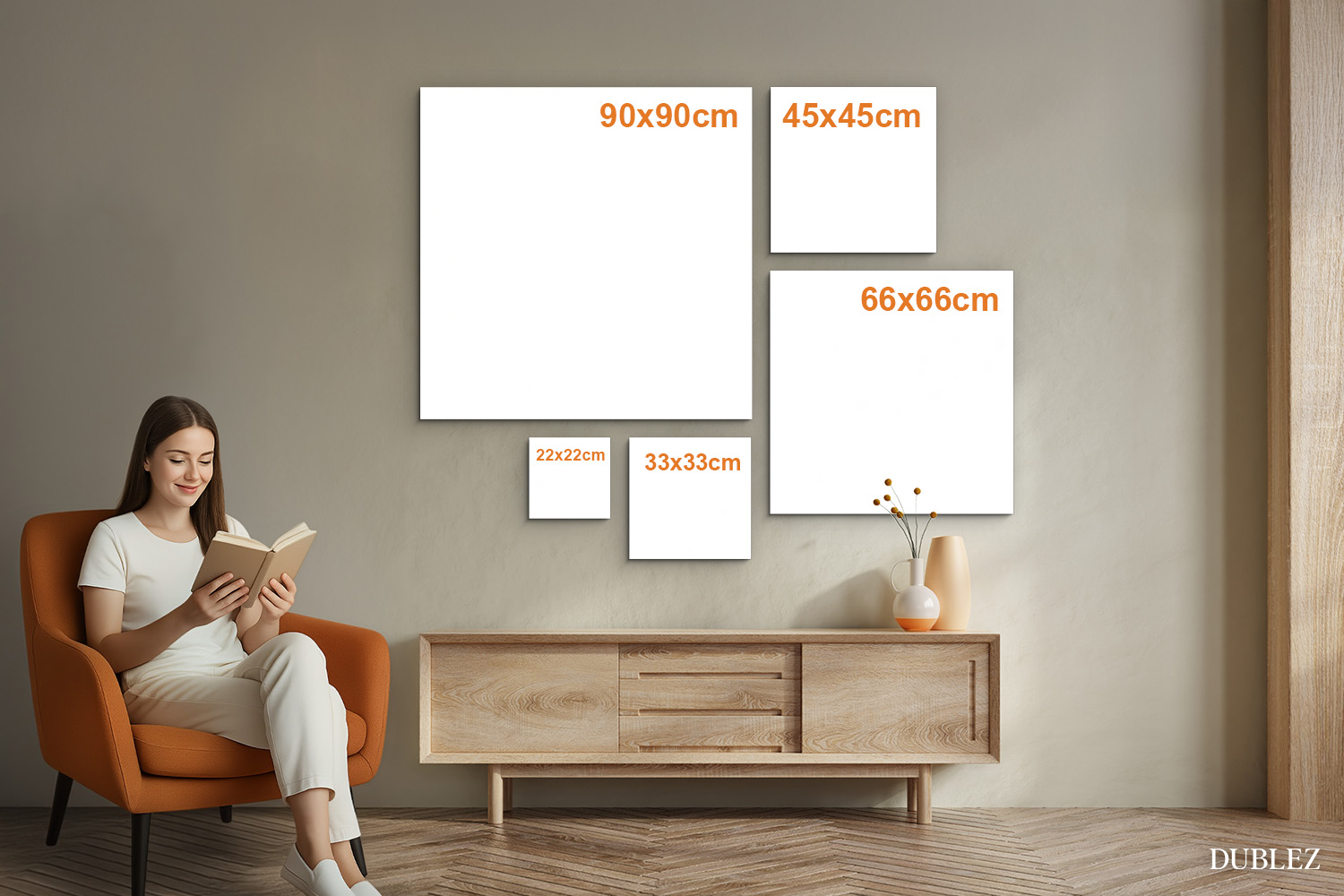 • For the 22x22 cm, 33x33 cm and 45x45 cm size, the wall art contains one hook.