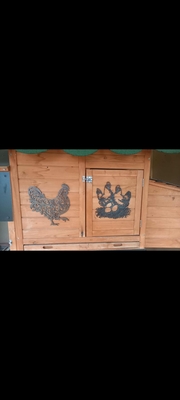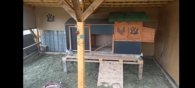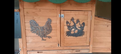 I really like decorating chickens, so I decided to beautify our chicken coop. It looks very nice and our friends like it too.