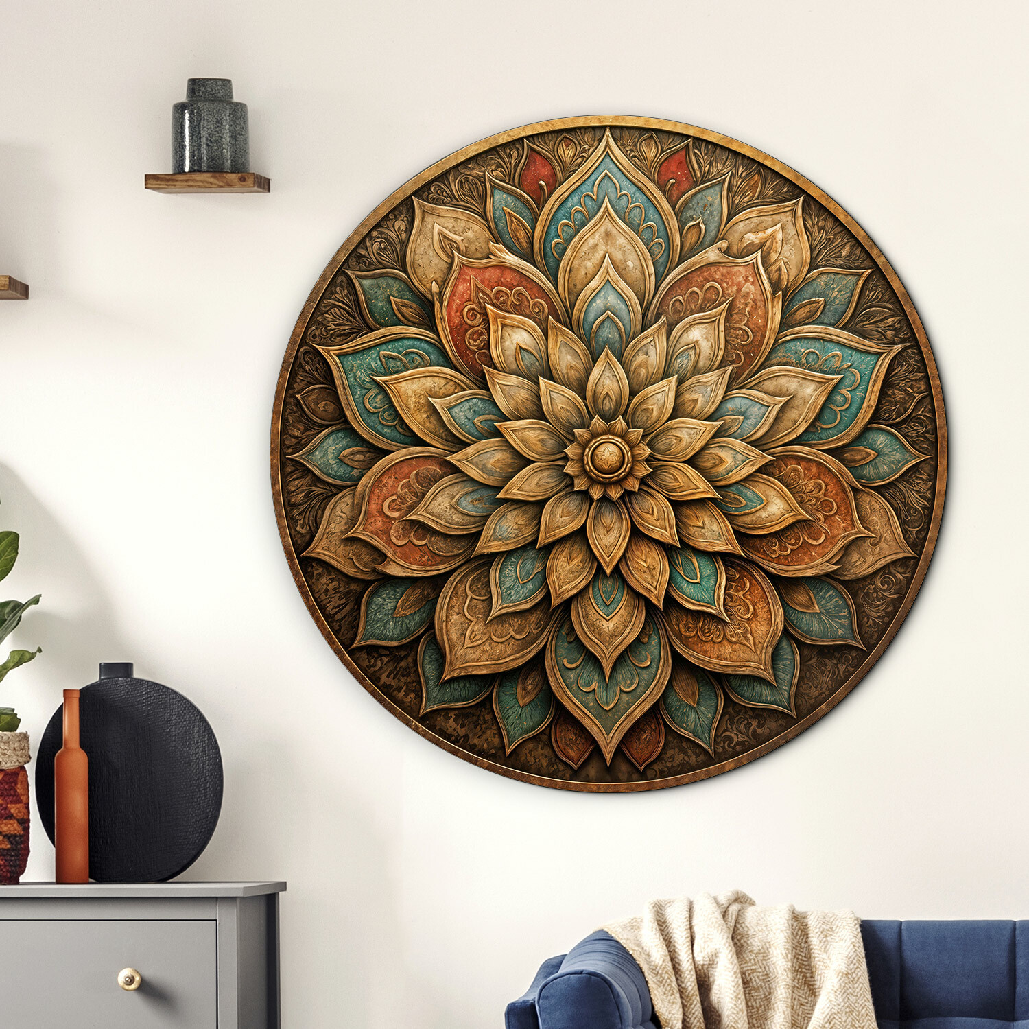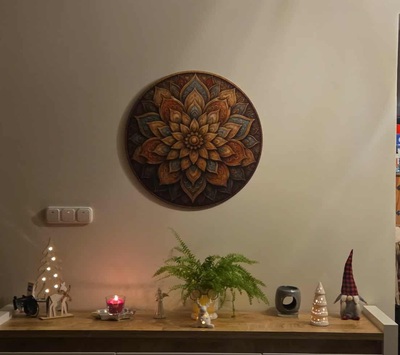 Round Shanti Mandala is a wooden picture that combines the beauty of detailed craftsmanship with the gentle energy of colors. Rich tones of gold, blue, and terracotta red create a warm and elegant effect. The mandala picture is ideal for the living room, bedroom, or office, where you want to surround yourself with harmony and a positive atmosphere.