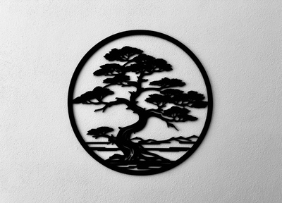 Bring peace and balance to your home with a wooden wall art of a bonsai tree. Precisely cut-out details capture the beautiful silhouette of an old bonsai. The tree wall art is ideal for the living room, bedroom or office, where its lines will bring harmony and tranquility. An original gift for a man, cut-out from wood. Order the wall art today and bring a timeless design into your interior.