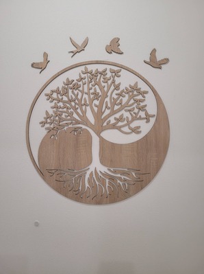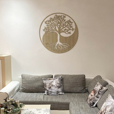 The wooden Tree of Life on the wall Symbiosis combines elements of the Yin Yang mandala and the popular Tree of Life motif. Thanks to the combination of these two symbols, it is a great wooden decoration for the apartment. The Tree of Life will stand out beautifully in the living room or in the bedroom, or it can serve as an original gift for any occasion.