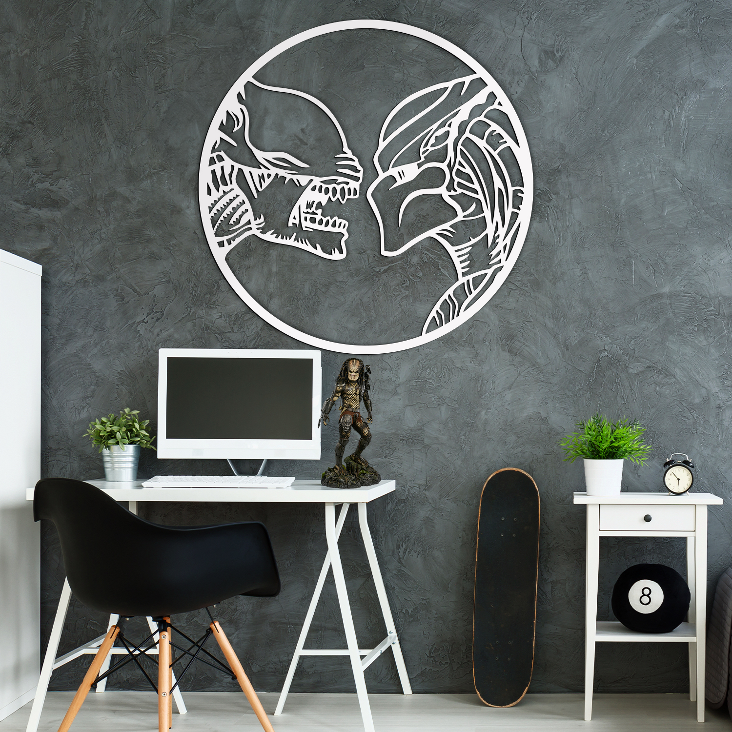 Wooden Wall Art from the Movie Alien vs. Predator is one of the most iconic moments in the sci-fi film genre. The cut-out art is intricately set in a circular frame, giving it a modern appeal. It's perfect for a student's room or as an original gift for a fan of sci-fi, horror, or cult film series.