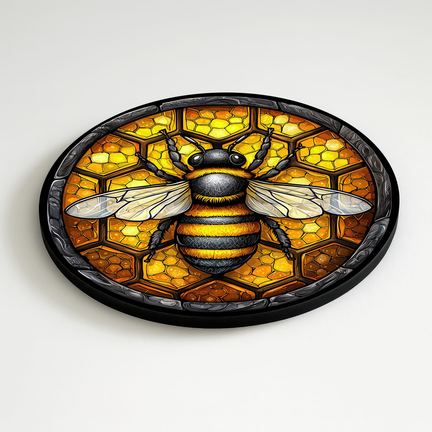 Colorful Wooden Wall Art with Bee on Honeycombs brings a touch of nature into your home. The vibrant gold and yellow hues combined with the intricately detailed bee create a stained glass effect. It looks great in the living room, kitchen, or hallway. This wooden wall art also makes an excellent gift for a beekeeper.